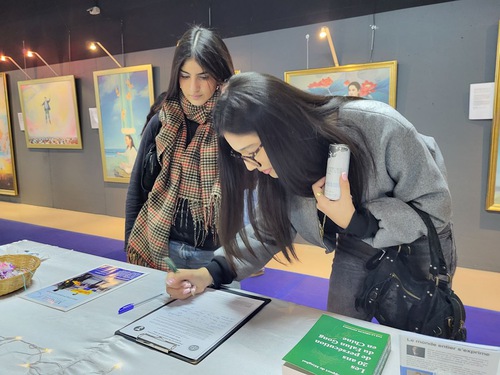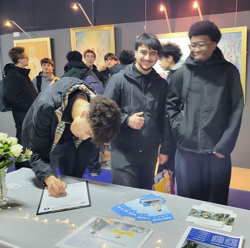The exhibition attracted many young people and students who viewed the paintings and read the descriptions. Afterwards, many of them signed the petition demanding that Beijing end the ongoing persecution of Falun Gong in China.