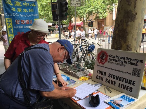 Practitioners held a signature drive in the downtown area, and posted informational posters at stores and shops. In less than two hours, more than 60 citizens filled out postcards to be sent to Prime Minister Malcolm Turnbull, calling upon him to address the Chinese regime’s forced organ harvesting from prisoners of conscience.