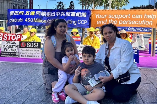 Saya and Michelle are sisters, and both work as caregivers for the elderly. They were taking their children out for fun on the weekend. They stopped at the rally and listened to practitioners’ speeches, especially about the CCP’s crime of harvesting organs from living Falun Gong practitioners, which shocked them. Saya said, “Forced organ harvesting is an extremely insane crime! No one can remain indifferent to such a crime!”