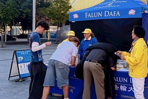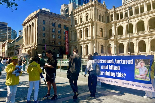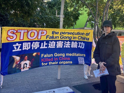 Carl, a master’s student in music at Queensland University of Technology, was drawn to the banners at the Falun Gong event, and took the initiative to talk with practitioners.