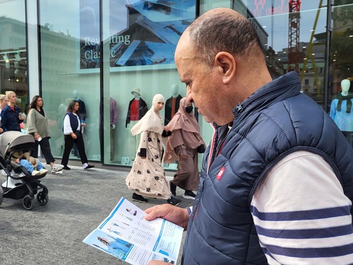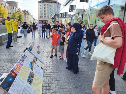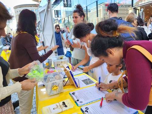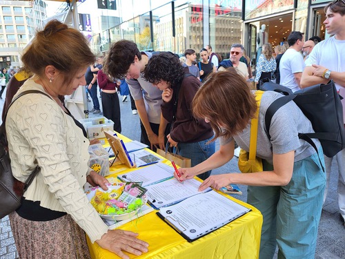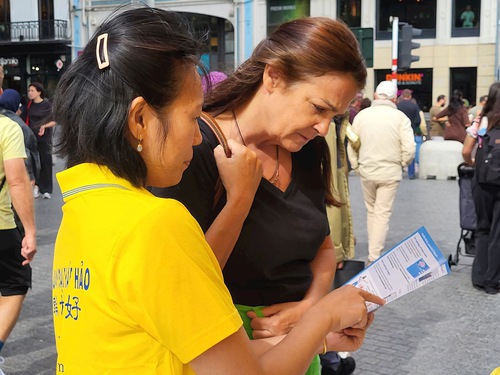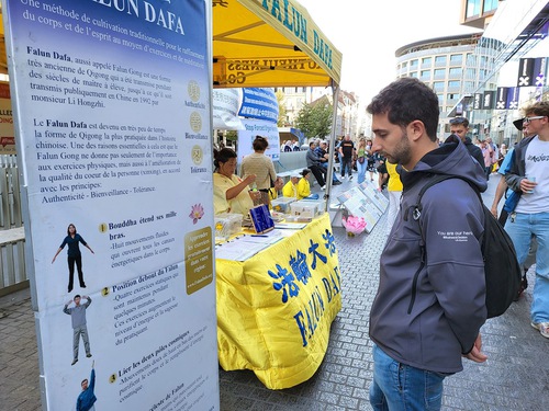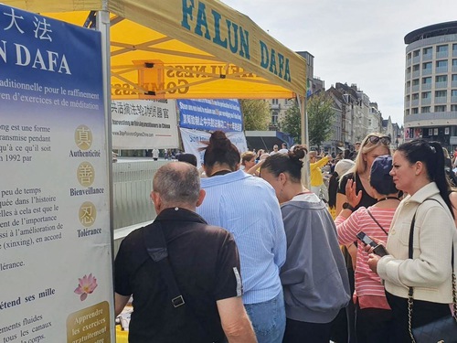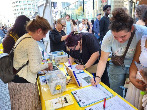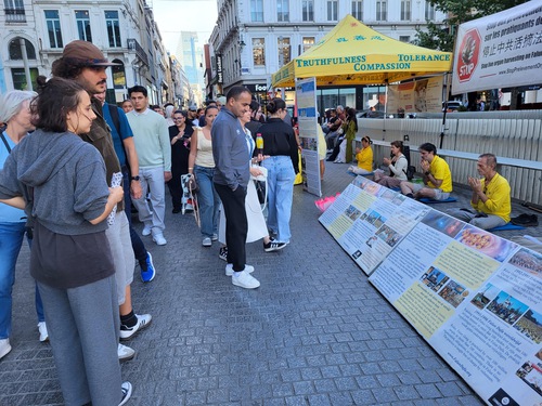 (Minghui.org) During an event in Brussels on September 8, 2025 practitioners told people about the Chinese Communist Party’s (CCP) persecution of Falun Dafa and state-sanctioned forced organ harvesting. Many passersby stopped to read the banners and signed the petition to end the human rights abuses.