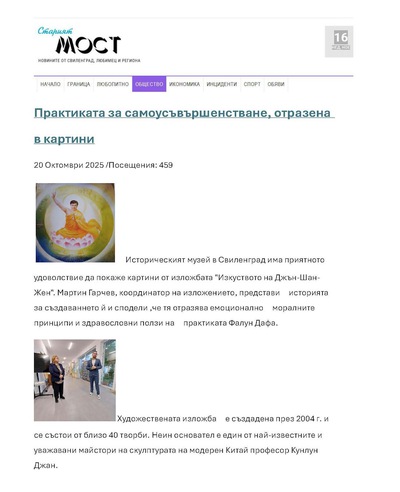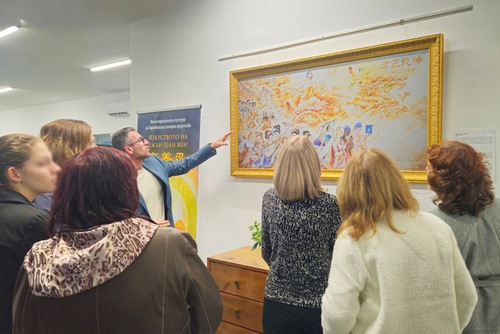 (Minghui.org) The Art of Zhen-Shan-Zhen international exhibition opened in the city of Svilengrad, Bulgaria on October 20, 2025, in the city’s Historical Museum. The exhibition will be on display for a month, until November 20, and residents will have the opportunity to experience Falun Dafa’s universal principles of Truthfulness, Compassion, and Forbearance through art.