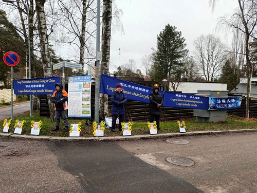 In observance of Human Rights Day, Falun Dafa practitioners in Finland protested in front of the Chinese Embassy in Helsinki on December 4, 2025, to condemn the Chinese Communist Party’s (CCP) 26-year persecution of their spiritual discipline. They also held a candlelight vigil on Kamppi in Helsinki on December 10 to honor fellow practitioners who died in the persecution and to urge people in Finland to pay attention to, and help stop the CCP’s state-sanctioned forced organ harvesting of prisoners of conscience.