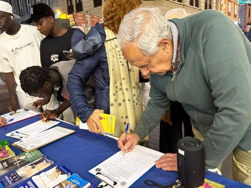 Many people stopped to find out more. They were surprised and disturbed when they learned about the atrocities the CCP is carrying out againt innocent people. Some took pictures of the exhibition, while many expressed their support for practitioners’ efforts and signed the petition. Several people were interested in learning Falun Dafa.