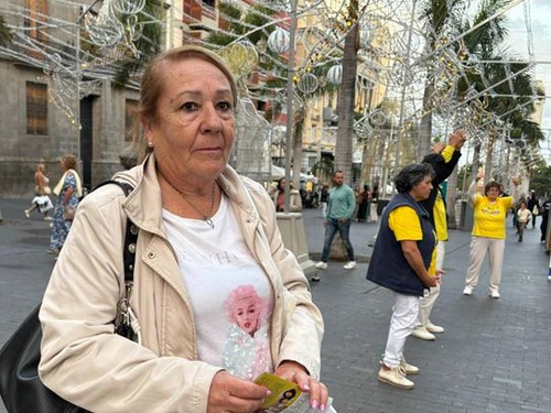 Carmen stopped to watch as practitioners did the exercises. She said, “These exercises make you feel calm and peaceful. They’re great!” She couldn’t understand the persecution and said it was irrational.