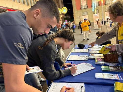 (Minghui.org) At a practitioners’ event on the Plaza de Candelaria in Tenerife, Spain, on November 21, 2025, many residents and tourists learned about Falun Dafa and signed a petition calling for an end to the Chinese Communist Party’s (CCP) persecution of Falun Dafa.
