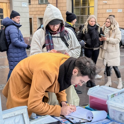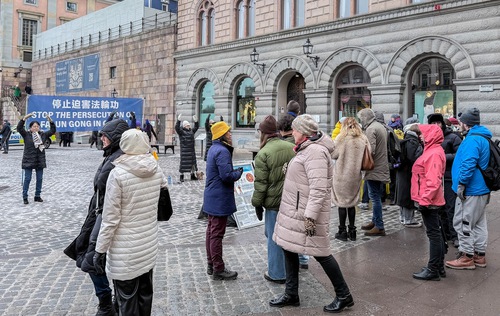 (Minghui.org) Falun Dafa practitioners held activities on Mynttorget near the Swedish Parliament Building on Fridays and Saturdays in November 2025. They demonstrated the exercises, raised awareness of the Chinese Communist Party’s (CCP) persecution, and collected signatures on a petition to end it.