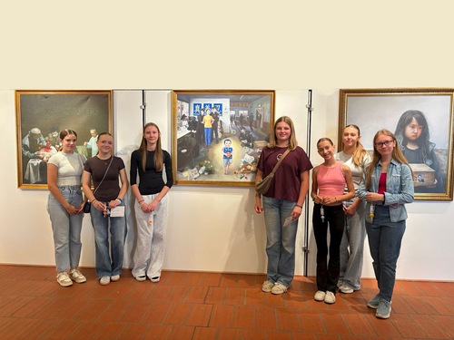 Several students from Donauwörth schools visited the exhibition. They headed straight for the painting “Preserving the Treasure” and had their photo taken.