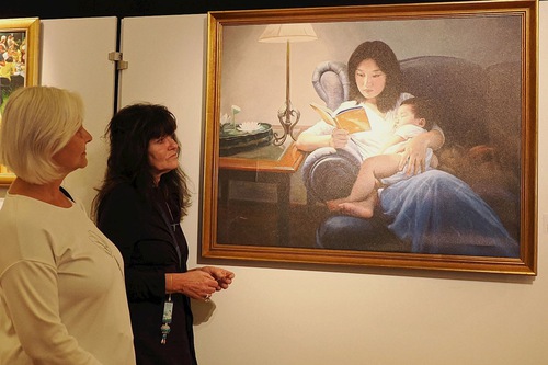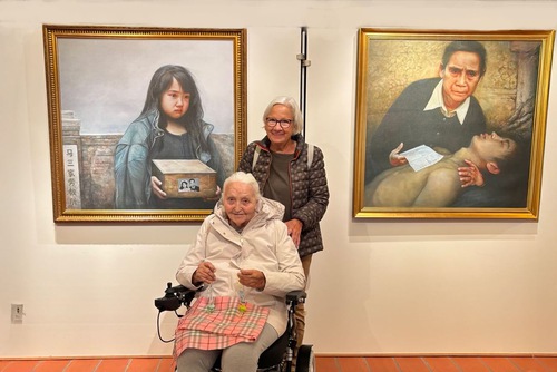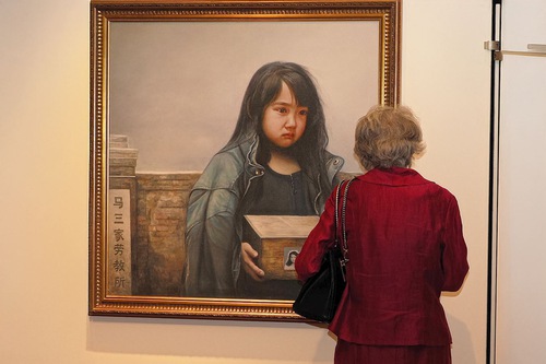 Another visitor was particularly fascinated by the painting techniques, the realism, and the juxtaposition between dark and light. She said there was something luminous and hopeful in each painting. She was deeply touched and moved to tears, and said, “Even in the paintings about persecution, a gentleness can still be perceived.”