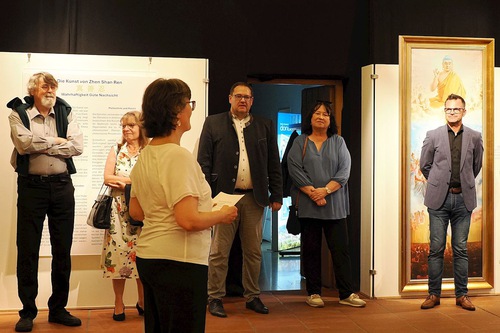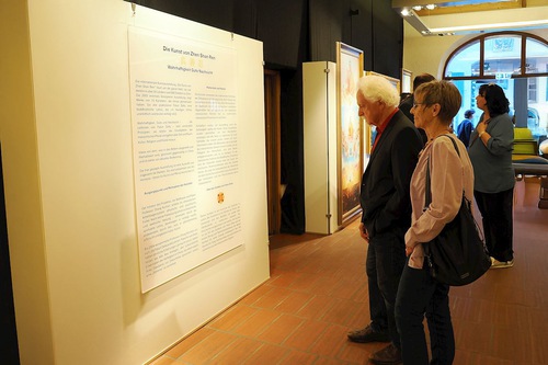 (Minghui.org) “Very touching and impressive” is how numerous visitors described the artworks in The Art of Zhen Shan Ren (Truthfulness-Compassion-Forbearance) International Exhibition, which was on display on September 19-28, 2025, in the historic armory in Donauwörth. More than 500 people viewed the artworks, some by chance while strolling through town or on a sightseeing tour, and others after learning of the exhibit through flyers, posters, social media, or the newspaper.