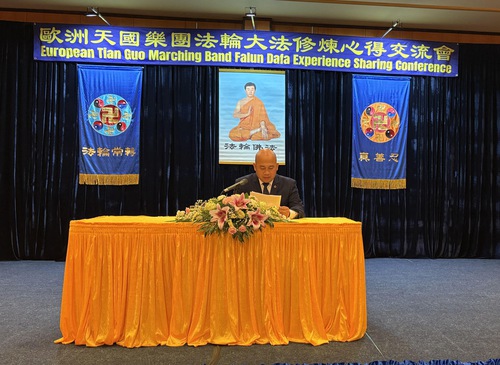 Two members of the band were the MCs for the conference. In their opening remarks, they said, “As members of the Tian Guo marching band, we validate the Fa and save sentient beings through music. We constantly cultivate ourselves in the process, let go of attachments, improve our character, work together, and form one body.”