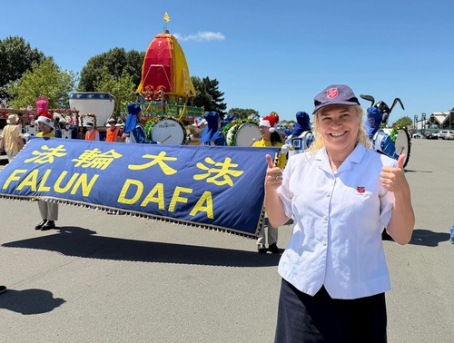 (Minghui.org) Many cities in New Zealand hold Christmas parades at the end of November. This year, Falun Dafa practitioners received invitations from more than 20 cities and districts to join their annual Christmas parades. Their Tian Guo Marching Band, dragon dance, and waist drum teams participated in the parades in Christchurch, Onehunga of Auckland, and Papakura of Auckland, on November 22 and 23, 2025.