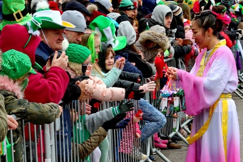 Falun Dafa practitioners were invited to participate in a parade on National Day, also called St. Patrick’s Day, in Cork, the second largest city in Ireland, on March 17, 2018. The parade featured 70 entries and included nearly 3,000 participants. About 50,000 spectators lined the parade route.