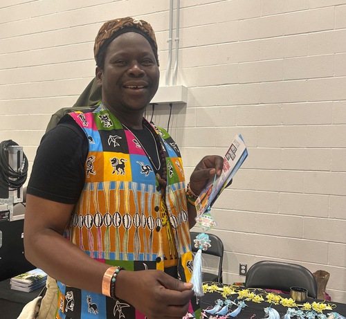 Wandara Topzo, a percussion artist from Central Africa, often performs at community events. He watched the practitioners’ exercise demonstration and imitated the movements.
