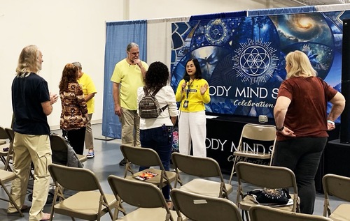 The Body, Mind, Spirit Expo attracts people interested in spiritual growth, alternative health, and various modes of cultivation, which makes it an excellent venue for practitioners to introduce Falun Dafa. Most attendees tend to already understand some relevant principles and are comfortable with some cultivation concepts, such as raising energy, or generating energy fields.