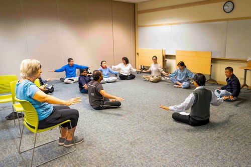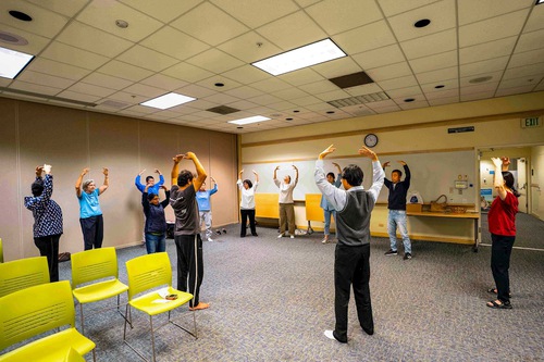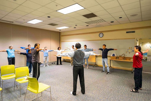 (Minghui.org) Falun Dafa practitioners held another free exercise class at the Fremont Main Library on September 6, 2025. After learning the five exercises, the participants expressed their gratitude for Falun Dafa (also known as Falun Gong) and said they benefited greatly.