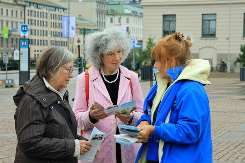 After talking with the practitioners, she learned about the principles of Falun Gong, Truthfulness-Compassion-Forbearance, and about the persecution in China. She stated that she absolutely could not agree with any action that goes against the will of the people and deprives them of their right to choose freely.