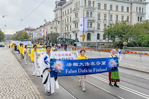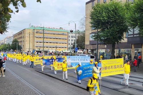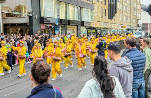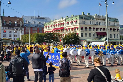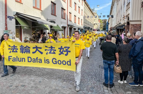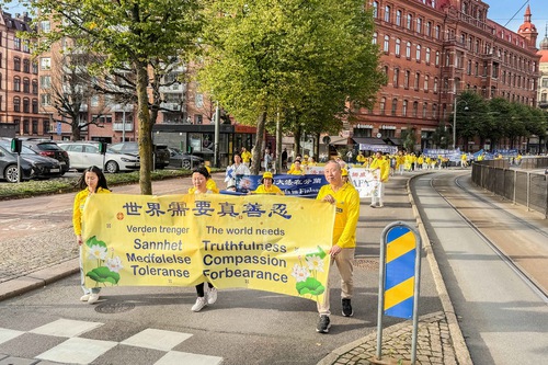 (Minghui.org) The day before the 2025 Nordic Falun Dafa Experience-Sharing Conference, Dafa practitioners held two parades in Gothenburg, Sweden on September 20 to celebrate the 30th anniversary of Falun Dafa’s introduction to Europe by Master Li Hongzhi.