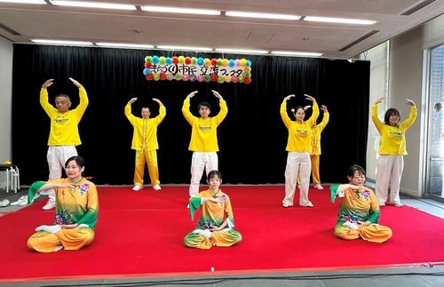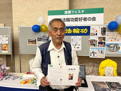 Mr. Yoshida came to the information booth after watching practitioners performance on the stage. He said in Chinese: “Your performance is great.” He asked for details on how to learn the exercises. He said: “I hope Chinese citizens have freedom of action and speech rather than being afraid to speak, or be wrongfully judged. It would be good if China can become a society like Japan, where people can voice their opinions freely.”