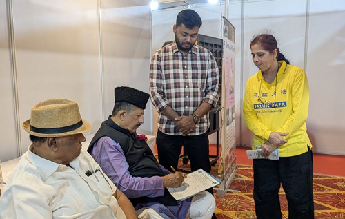 Mr. Ghanekar shared, “I am an avid reader and mostly enjoy books on spirituality. I sensed a good energy at the stall and would like to read more about Falun Dafa.” He purchased a book and expressed his intention to contact practitioners to learn more about the practice.