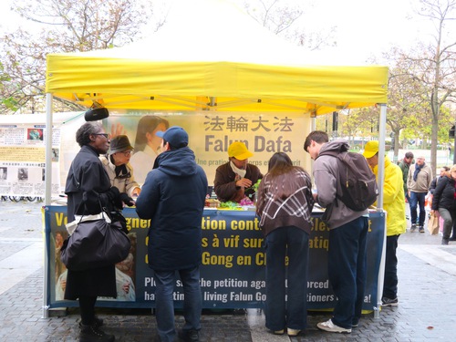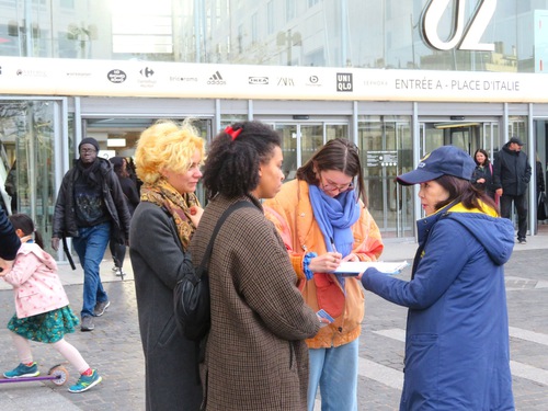 Practitioners introduced Falun Dafa and raised awareness of the persecution during an event at Place d’Italie on November 8, 2025. Many people signed the petition against the persecution. Some learned the Falun Dafa exercises and asked about group practice sites.