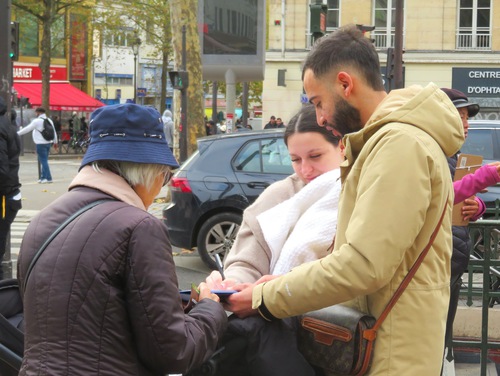 (Minghui.org) Falun Dafa practitioners held activities at Place d’Italie and Belleville, in Paris, and in Colmar in Eastern France, on November 8 and 11, 2025, to introduce Falun Dafa (also known as Falun Gong) and raise awareness of the Chinese Communist Party’s (CCP) persecution of the practice. Many people talked with practitioners and learned about the human rights violations taking place in China.