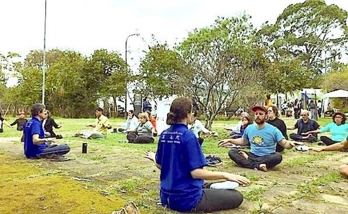 Falun Gong meditation is taught to attendees of an event at the University of São Paulo.