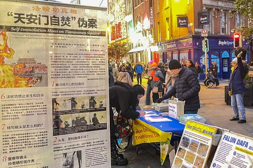 Dublin’s city centre is a popular tourist destination. Besides a wide array of shops, there are also many historical buildings, including Trinity College and the National Gallery of Ireland. From the start of summer, the streets and alleys of downtown Dublin are filled with tourists. Dafa practitioners hold truth-clarification activities in the area every Saturday afternoon.