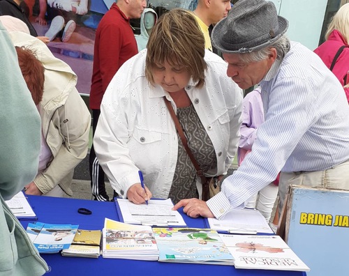 (Minghui.org) The annual Rose of Tralee Festival is one of the largest and oldest festivals in Ireland and attracts about 200,000 tourists from Ireland and around the world. Falun Dafa practitioners participated in the festival on August 20 and 21, 2022, to introduce the practice and tell people about the persecution in China.