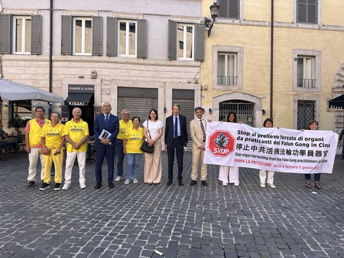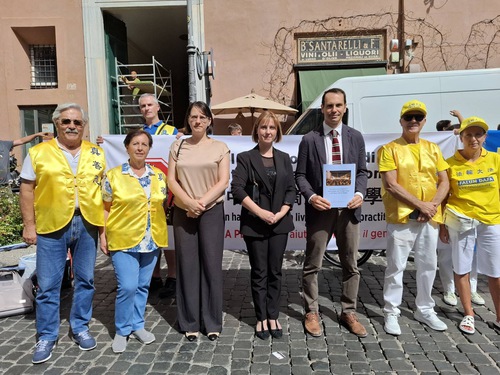 Representatives and officials spoke at the rallies to support practitioners’ efforts to end the persecution – including Guilio Terzi, Senator of Brothers of Italy and former Italian Foreign Minister; Matteo Angioli, Senator Terzi’s consultant; Sergio Rastrelli, Senator of Brothers of Italy; and Pietrangelo Massaro, vice president of the Rome City Council.