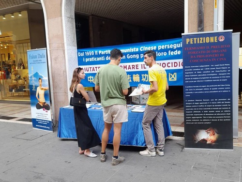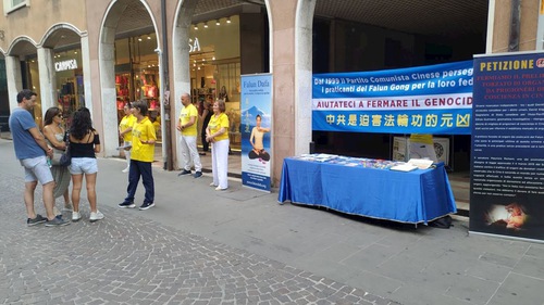 Practitioners from northeastern Italy held activities in Padova on the weekend of July 19 and in Treviso on the weekend of July 26 to tell people about the CCP’s decades-long suppression that targets Falun Dafa practitioners.