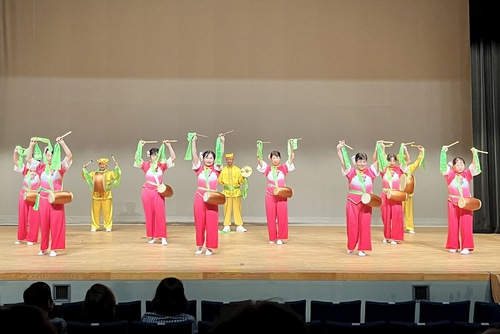 The stage performances were rich and varied, encompassing traditional and modern art forms such as dance, song, the Edo-style lion dance, shakuhachi, guzheng, horse-head fiddle, and piano performances. Practitioners of Falun Dafa performed a vibrant waist drum performance and introduced the five exercises.