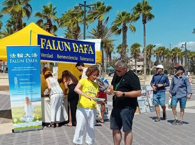 Two art teachers invited a Falun Gong practitioner to introduce the practice at their summer camp and the practitioner demonstrated the Falun Gong exercises to the students. The teachers led the students to visit the art exhibition and commented in the guestbook, “It is a great experience to let summer art camp students learn about history. Thank you for coming, teaching them to meditate, and explaining the meaning of these artworks to them.”