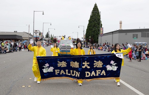 Practitioners participate in local summer parades and celebrations in many cities in the greater Seattle area every year. Many people thus have a good impression of Falun Dafa and its practitioners. Some residents tell them excitedly that they have seen them in parades before and they really like the peace and goodness that Falun Dafa brings.