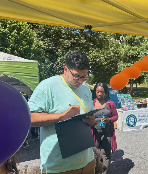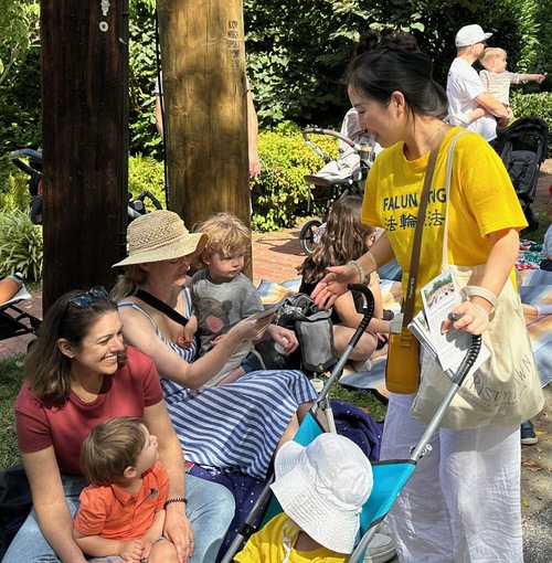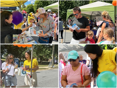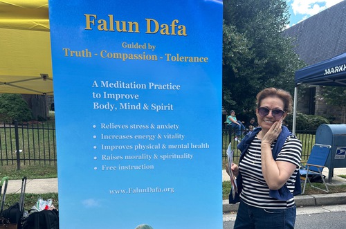 When Mayra saw the Falun Dafa booth at the Kensington Labor Day celebration, she got a copy of the introductory flyer, a weekly publication from Minghui.org, and other related materials. She said she was looking for a meditation practice and she felt she came at the right time. She exchanged her contact information with a practitioner and said she hoped to learn how to practice Falun Dafa.