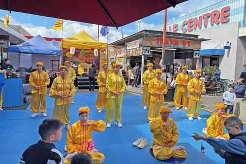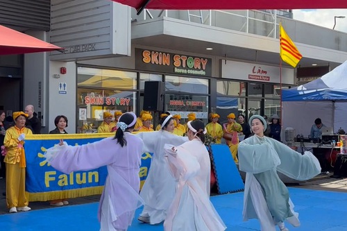 (Minghui.org) The Vietnamese Community Association held a Mid-Autumn Festival celebration in the Springvale suburb of Melbourne, on September 20, 2025. Falun Dafa (Falun Gong) practitioners were invited to participate. They demonstrated the exercises, performed the waist drums, and did a Vietnamese folk dance. Their booth drew many residents and tourists who learned about Falun Dafa.