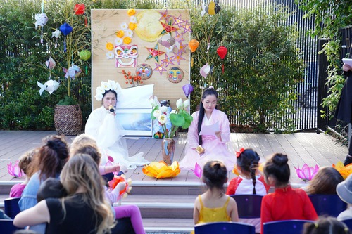 Thi Phuong Thanh Nguyen, a Vietnamese practitioner and a key member of the Vietnamese folk dance troupe, said their performance was based on two children’s songs composed by Vietnamese Falun Dafa practitioners, “Brighter Than the Moonlight” and “Joyful Full Moon Festival.” The performance showcased the beauty and preciousness of children’s pure and kind hearts, and conveys the message of Truthfulness, Compassion, and Forbearance through celebrating the Mid-Autumn Festival.