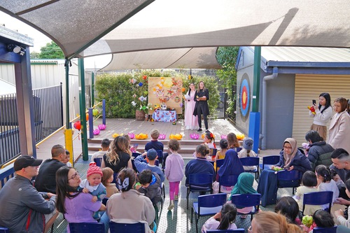 Ms. Nguyen, a kindergarten teacher, planned and organised a Mid-Autumn Festival celebration at her kindergarten the day before, on September 19. She said the program included waist drum performances and Vietnamese folk dances by Falun Dafa practitioners, as well as exercise demonstrations and storytelling. The performance introduced Falun Dafa and the principles of Truthfulness, Compassion, and Forbearance to kindergarten staff, families, and children. The costumes for the Vietnamese folk dance are traditional, authentic Vietnamese attire and are very elegant.