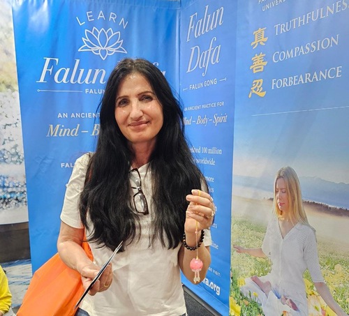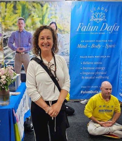 She said the principles of Truthfulness, Compassion, and Forbearance resonate with her. “I think that what you are doing is wonderful. Just keep spreading the word about the beauty of Falun Dafa and the peaceful feeling and the principles in daily life.”