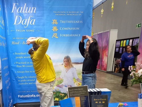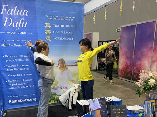 (Minghui.org) The second Mind-Body-Spirit Festival was held at the Melbourne Convention Centre from November 14 to 16, 2025. It is the biggest health expo and due to its popularity, it’s held twice a year, in June and November. Falun Dafa practitioners participated in the festival again and introduced the spiritual practice to visitors.