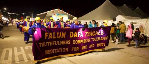 Despite the freezing winter weather, people are enthusiastic about the parade and both sides of the street were lined with spectators. Many were surprised when they saw practitioners and were heard exclaiming, “This is a Chinese group!”