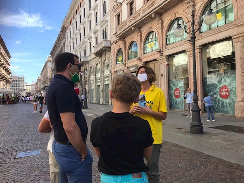 Falun Dafa Practitioners held activities to introduce Falun Dafa (also called Falun Gong) in Milan, Italy on July 4, 2020. They exposed the Chinese Communist Party’s (CCP) persecution of the practice, especially the state-sanctioned organ harvesting from living practitioners.