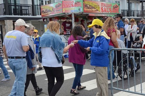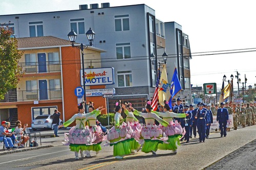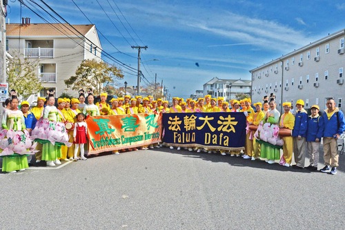 (Minghui.org) Falun Dafa practitioners participated in the 34th Annual Ocean County Columbus Day Parade in Seaside Heights on October 19, 2025. Their waist-drum dance and lotus fairy dance brought traditional Chinese culture to the festival and won high praise.