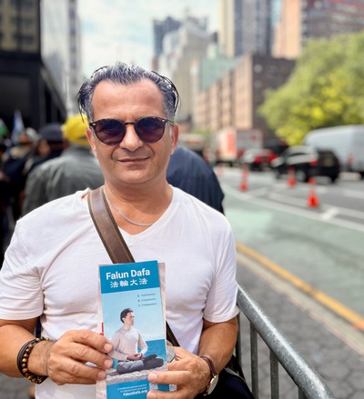 (Minghui.org) The 80th United Nations General Assembly was held at the United Nations Headquarters in Manhattan, New York on September 23, 2025. Falun Gong practitioners gathered at Dag Hammarskjold Plaza that morning to do the exercises and peacefully protest to raise awareness of the Chinese Communist Party’s (CCP) ongoing persecution.