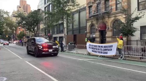 Falun Gong practitioners also held banners on 2nd Ave and 52nd Street in Manhattan as part of their effort to tell people about the persecution. They said President Trump’s car entourage passed by and saw the banners with the message: “Falun Dafa Is Good,” and “Communism is a Demonic Ideology Seeking to Annihilate Humanity.” They saw President Trump smile and wave at practitioners who waved back.