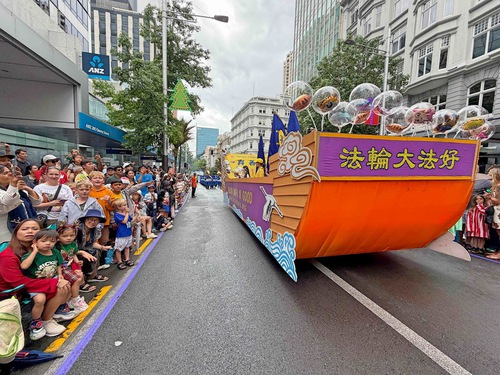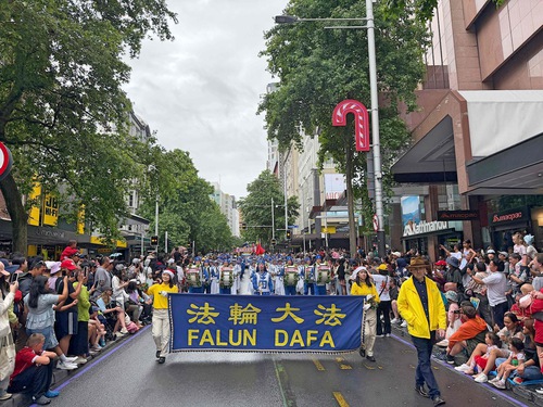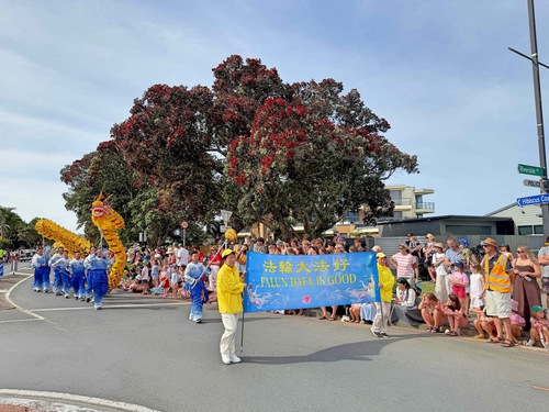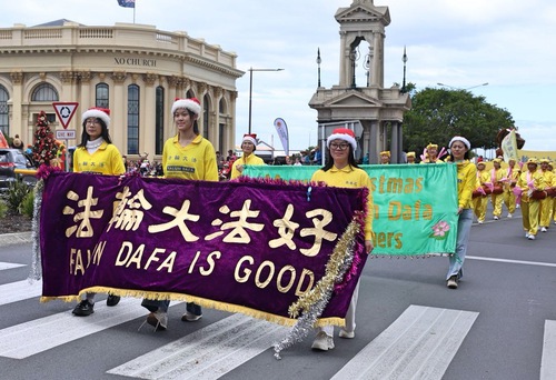 (Minghui.org) Falun Dafa practitioners in New Zealand participated in five Christmas parades in four cities on North Island and South Island on November 29 and 30, 2025. The parades were held in Auckland, Orewa of Auckland, Rotorua, Dunedin, and Invercargill.