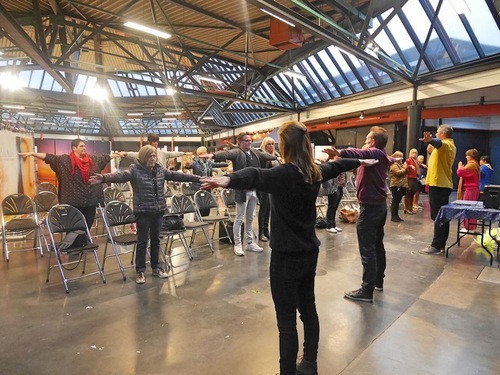 Practitioners also had an information booth at Merkez Park. Many festival attendees came to the booth to learn the exercises. Practitioners held workshops to teach people to make paper lotus flowers. Many children participated.