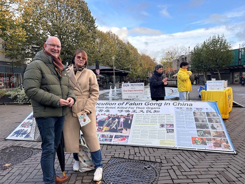 Local residents Michael and his wife Susan stopped by the Falun Dafa booth in Oss, and told practitioners that they signed an online petition calling to stop the CCP’s persecution of Falun Dafa. “We think every person, every culture, and every belief should be free from suppression from government or other groups,” Michael said. They were saddened to learn of the CCP’s atrocity of harvesting organs from living Falun Dafa practitioners and wished the practitioners success.