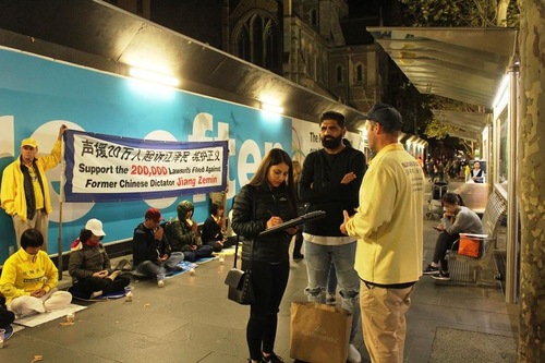 (Minghui.org) Falun Dafa practitioners in Western Australia held a rally at the Murray Street Mall in Perth’s city centre on May 17, 2025. They told people about Falun Dafa, demonstrated the exercises, and gave performances to celebrate the 26th World Falun Dafa Day, which is also the birthday of Falun Dafa’s founder, Mr. Li Hongzhi. Many residents stopped to watch, and some praised Falun Dafa’s principles, Truthfulness, Compassion, and Forbearance.