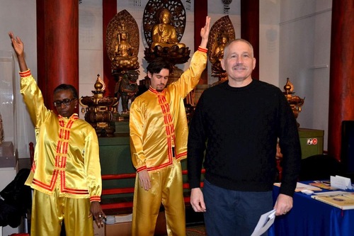 One man signed the petition and talked with practitioners. He took a copy of all of the available materials and said he would look into it after returning home. Several days later, he called a practitioner saying he had started to read Zhuan Falun, the main teachings of Falun Dafa. He said he looked forward to meeting other practitioners and sharing experiences.
